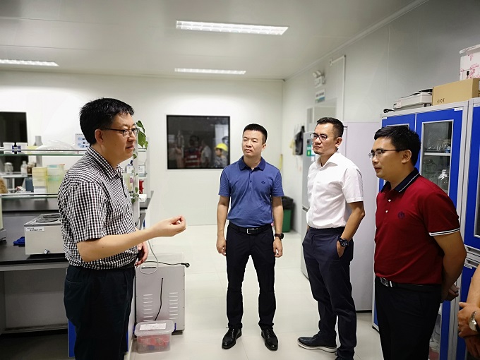 來(lái)訪(fǎng)領(lǐng)導一行首先參觀(guān)了海大研究院,對研究院各個(gè)實(shí)驗室及檢測中心進(jìn)行深入了解,研究院副院長(cháng)王貴平詳細介紹了海大集團的研發(fā)投入、研發(fā)團隊、研發(fā)成果及獲得的榮譽(yù)。在了解到海大有這么多的博士人才,以及博士后工作站、院士工作站后,李副市長(cháng)為研究院強大的研究團隊點(diǎn)贊。同時(shí),來(lái)訪(fǎng)領(lǐng)導對海大的檢測中心CNAS認證強大檢測實(shí)力非常認同,在參觀(guān)實(shí)驗室的過(guò)程中,對海大獨立研發(fā)的水體有害菌快速定量檢測盒等各類(lèi)先進(jìn)的檢測產(chǎn)品贊不絕口。