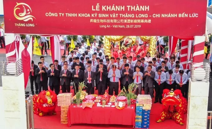 7月28日,升龍生物科技有限公司濱瀝分公司新廠(chǎng)落成及開(kāi)幕典禮在隆安省濱瀝縣盛發(fā)工業(yè)區隆重舉行,隆安省副書(shū)記阮文得先生、水產(chǎn)總局養殖處處長(cháng)汝文謹先生、公司經(jīng)銷(xiāo)商代表、各合作廠(chǎng)商、銀行代表及飼料同行朋友等近千人參加了開(kāi)幕典禮,升龍事業(yè)部總經(jīng)理莊界成及公司部門(mén)主管和到場(chǎng)嘉賓一起共享開(kāi)幕盛典的喜悅。