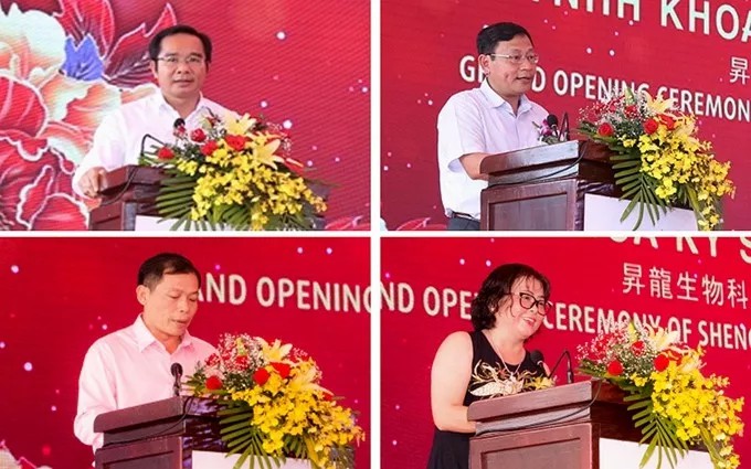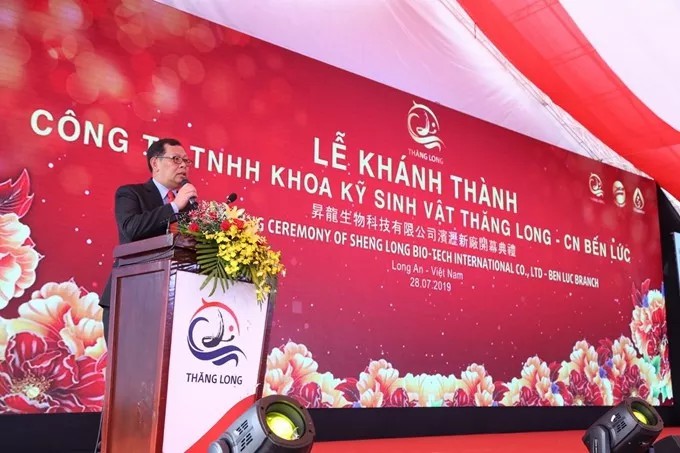 升龍事業(yè)部總經(jīng)理莊界成為開(kāi)幕典禮致辭,莊總代表升龍事業(yè)部向越南政府及現場(chǎng)的貴賓朋友致上最誠摯的謝意,感謝大家對升龍公司過(guò)去多年來(lái)的支持與幫助,使升龍公司在越南的投資項目順利落成,并于本年度再增加新的蝦、魚(yú)飼料生產(chǎn)線(xiàn)。本次升龍公司的新廠(chǎng)投產(chǎn),從土地的購買(mǎi)、廠(chǎng)房的興建以及后續的業(yè)務(wù)銷(xiāo)售,都得到了當地政府及在場(chǎng)嘉賓鼎力支持,未來(lái)升龍公司將更加努力,朝著(zhù)“讓升龍事業(yè)部成為越南乃至全亞洲最優(yōu)秀的水產(chǎn)企業(yè)之一”的目標大步邁進(jìn)。