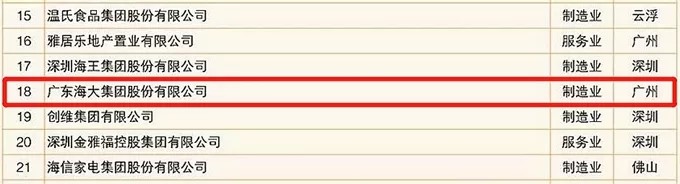 2019廣東制造業(yè)企業(yè)100強第15位↑