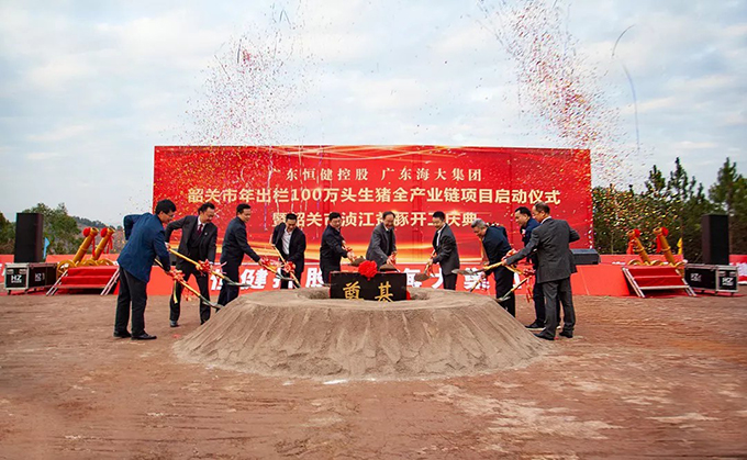 2020年1月3日,由廣東恒健投資控股有限公司(以下簡(jiǎn)稱(chēng)恒健控股)、廣東海大集團股份有限公司(以下簡(jiǎn)稱(chēng)海大集團)共同發(fā)起的韶關(guān)市年出欄100萬(wàn)頭生豬全產(chǎn)業(yè)鏈項目啟動(dòng)暨湞江益豚奠基儀式在韶關(guān)市湞江區隆重舉行。項目總投資30億元,建成后將包含生態(tài)智慧養殖、飼料加工、生豬屠宰、冷鏈運輸等養殖全產(chǎn)業(yè)鏈。廣東省農業(yè)農村廳廳長(cháng)顧幸偉等領(lǐng)導出席活動(dòng)。恒健控股董事長(cháng)溫文星、海大集團董事長(cháng)薛華出席現場(chǎng)并參加奠基儀式。