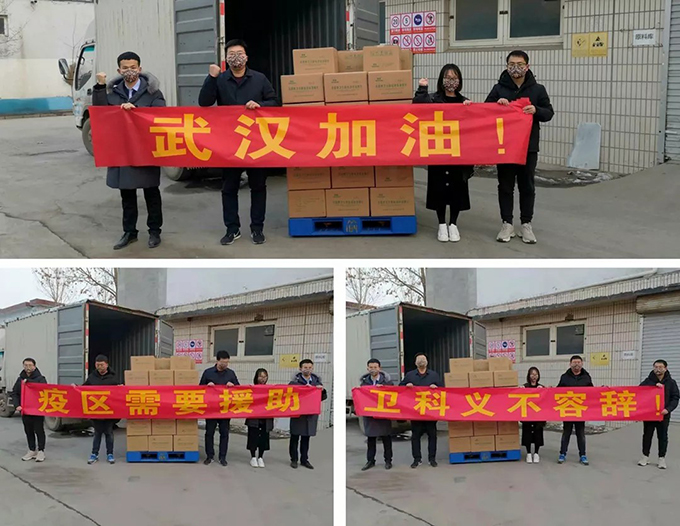 為了支援疫區、做好全國各地疫情防控,衛科生物通過(guò)湖北武漢紅十字會(huì ),捐贈給湖北武漢及周邊疫區50箱環(huán)境消毒泡騰片;相關(guān)單位向衛科生物采購調撥20噸二氧化氯消毒片劑,連夜裝車(chē),火速發(fā)往疫區,為新型冠狀病毒肺炎疫情防控工作提供了有力的支持和幫助;同時(shí),在得知石家莊市主要治療醫院消毒物資缺乏后,向石家莊五院緊急捐贈10箱二氧化氯消毒泡騰片,用實(shí)際行動(dòng)為石家莊戰斗在一線(xiàn)的醫療機構提供支援;此外,衛科生物還向華中農大醫院、晉州市政府、石家莊高新區政府等機構捐贈了一些急需的消毒產(chǎn)品,希望通過(guò)公司的綿薄之力為全國抗疫戰做出一份貢獻。