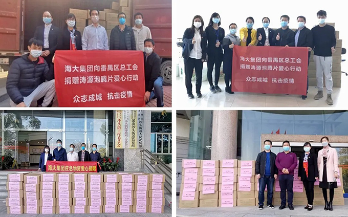 海大集團作為農牧業(yè)高新龍頭企業(yè)、省市區大型骨干企業(yè),不僅心系湖北一線(xiàn)“疫”戰、愛(ài)心捐贈,而且主動(dòng)擔當作為,發(fā)揮排頭兵作用、發(fā)揚大愛(ài)關(guān)懷精神,助力區內企業(yè)穩產(chǎn)保供。因受疫情影響,各行各業(yè)復工復產(chǎn)迫在眉睫,在集團疫情防控穩產(chǎn)保供總指揮、董事長(cháng)薛華的大力支持下,副總裁、研究院院長(cháng)、市勞動(dòng)模范錢(qián)雪橋和黨支部書(shū)記、工會(huì )主席、總裁助理潘潔代表集團“助力復工愛(ài)心領(lǐng)導小組”, 積極響應區委、區政府和區總工會(huì )的倡議,2月21日、24日代表集團向番禺區總工會(huì )、南村鎮政府、沙頭街道辦捐贈400箱共4噸防疫消毒物資、海大專(zhuān)利產(chǎn)品濤源二氧化氯消毒泡騰片,幫助天安科技園區內1000多家企業(yè)共抗疫情,助力沙灣珠寶產(chǎn)業(yè)園內80多家珠寶企業(yè)復工復產(chǎn),支援南村鎮、沙頭街數十家企業(yè)、醫院及學(xué)校復工、復學(xué)。至目前,海大集團累計已捐助860多萬(wàn)元現金和物資,馳援疫情防控工作,獲各級政府的高度肯定。