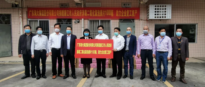 座談會(huì )上,總裁助理潘潔介紹道,目前,海大集團在全國飼料行業(yè)中排名前三,主要業(yè)務(wù)范圍包括:飼料、優(yōu)質(zhì)苗種、動(dòng)物保健、水產(chǎn)和生豬的規模養殖、屠宰和健康食品五大業(yè)務(wù)板塊,其中水產(chǎn)飼料銷(xiāo)售量全球領(lǐng)先。自2007年湛江海大建廠(chǎng)以來(lái),各方面工作得到了廉江市市委市政府的大力支持,海大集團表示衷心的感謝。疫情期間,海大集團作為中國500強的上市企業(yè),一直履行社會(huì )責任和勇于擔當,既馳援前方一線(xiàn)防控新冠肺炎,又助力后方疫情防控和穩產(chǎn)保供工作。這次捐贈的二化氯氧消毒泡騰片,旨在助力廉江市企業(yè)復工、復產(chǎn)以及學(xué)校復學(xué)。