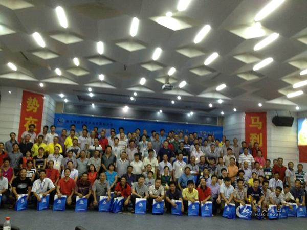7月16日上午,華南二區魚(yú)料2014年上半年示范戶(hù)總結表彰大會(huì )在研究中心隆重召開(kāi)。海大學(xué)院副院長(cháng)丁振紅,服務(wù)營(yíng)銷(xiāo)中心副總監雷和江、王子銳,華南二區副總經(jīng)理羅蕗、人行總監黃正華、采購副總監李良臣以及來(lái)自華南二區魚(yú)料的示范戶(hù)、經(jīng)銷(xiāo)商和目標客戶(hù)100多人參與了本次會(huì )議。