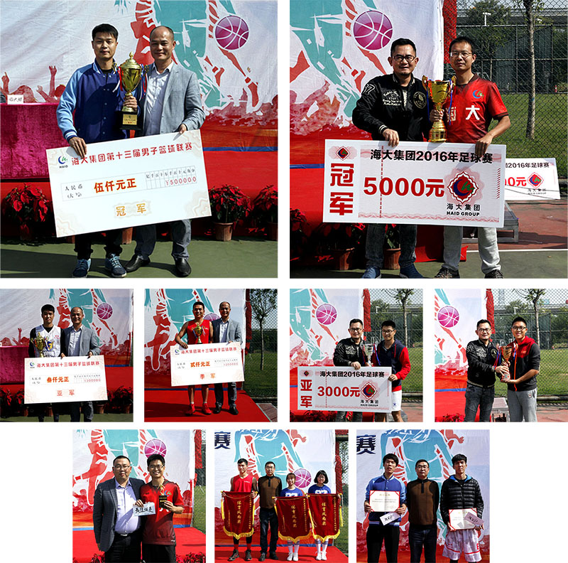 集團副總裁許英灼先生致閉幕詞,并與集團副總裁江謝武、華南一區副總經(jīng)理田大斌、行政和人力中心總監初永鋼等集團領(lǐng)導為獲獎球隊頒獎;最后,江謝武副總裁宣布海大集團第十三屆男子籃球聯(lián)賽圓滿(mǎn)閉幕。
