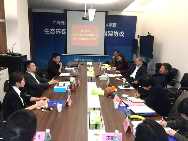 2017年3月2日,農業(yè)部國際合作司副司長(cháng)張陸彪一行在廣東省農業(yè)廳副巡視員陳正輝等同志的陪同下來(lái)訪(fǎng)海大集團,調研農業(yè)“走出去”等相關(guān)情況。集團董事長(cháng)薛華等熱情接待了客人,并出席座談會(huì )。