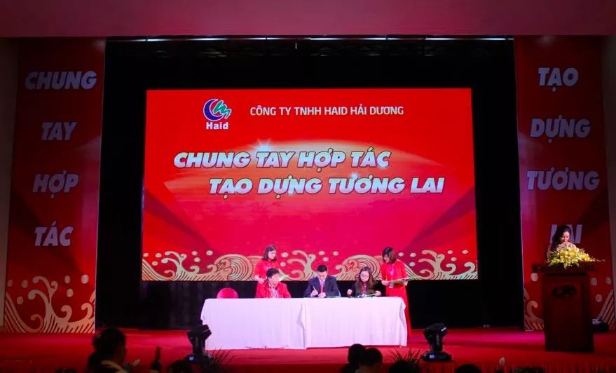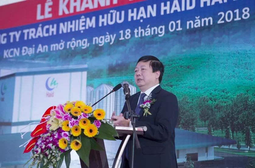 上午10:08,海陽(yáng)省人民委員會(huì )主席阮陽(yáng)泰登臺鄭重宣布:海陽(yáng)海大有限責任公司開(kāi)業(yè)慶典開(kāi)幕!并代表省委,省政府向海大集團選擇在越南海陽(yáng)投資表示歡迎,對海陽(yáng)海大公司快速建成投產(chǎn)表示熱烈祝賀,同時(shí)承諾,海陽(yáng)省各政府職能部門(mén)將為海陽(yáng)海大有限責任公司的建設、生產(chǎn)、經(jīng)營(yíng)提供良好的發(fā)展環(huán)境。