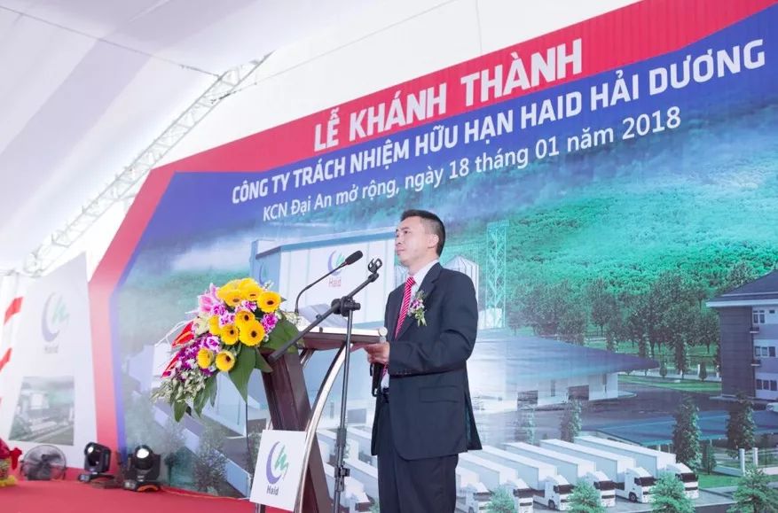 海大集團戰略發(fā)展事業(yè)部越南區總經(jīng)理兼海陽(yáng)海大總經(jīng)理唐明作了熱情洋溢的致詞,并向前來(lái)參加開(kāi)業(yè)慶典的各位領(lǐng)導、各位貴賓表達了熱烈的歡迎和誠摯的謝意。海陽(yáng)海大用不到一年的時(shí)間建設成一座如此規模的現代化工廠(chǎng),離不開(kāi)集團、當地政府、原料供應商的大力支持,離不開(kāi)工程建設者的辛勞付出、離不開(kāi)公司建設生產(chǎn)經(jīng)營(yíng)團隊的緊密協(xié)作,離不開(kāi)與公司攜手合作的經(jīng)銷(xiāo)商和養殖戶(hù)!他堅信,公司必將以開(kāi)業(yè)典禮為契機,把公司經(jīng)營(yíng)好,為海大集團在海外發(fā)展做出典范,為當地經(jīng)濟發(fā)展做出貢獻,為經(jīng)銷(xiāo)商和養殖戶(hù)創(chuàng )造價(jià)值和帶來(lái)收益,為公司員工的成長(cháng)和收益提供保障。