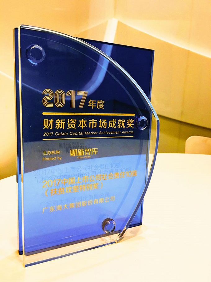 3月28日,“2018中國資本市場(chǎng)年會(huì )暨財新資本市場(chǎng)成就獎”頒獎典禮在北京舉行。廣東海大集團股份有限公司憑借其在國家精準扶貧項目上的積極響應和貢獻,榮獲“2017中國上市公司社會(huì )責任十強(扶貧攻堅特別獎)”。